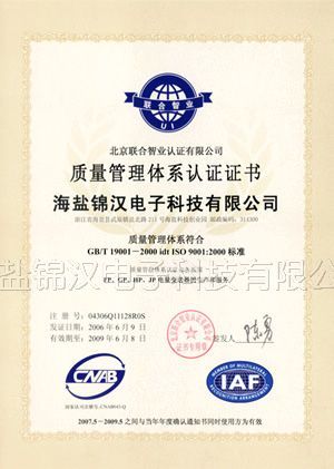 ISO9000質(zhì)量管理體系認(rèn)證證書(shū)