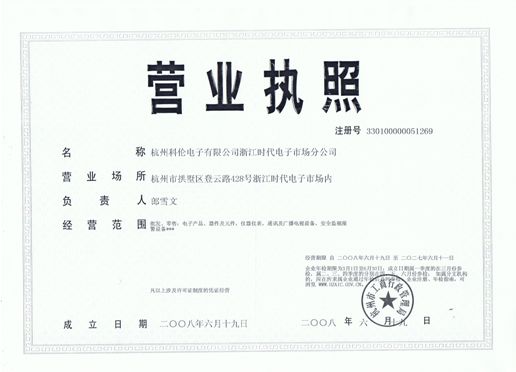 杭州科倫電子有限公司營業(yè)執(zhí)照