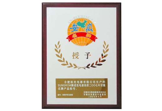 安徽名牌產(chǎn)品證書