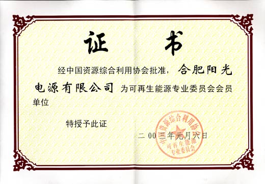 可再生能源專業(yè)委員會(huì)會(huì)員證書