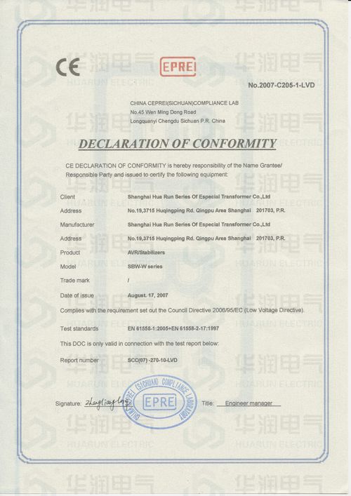 CE產(chǎn)品認(rèn)證證書(SBW-W無觸點(diǎn)交流穩(wěn)壓器)