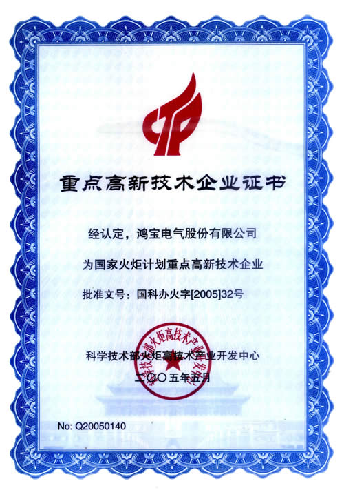 重點高新技術企業(yè)證書