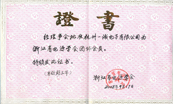 浙江電源學(xué)會(huì)證書
