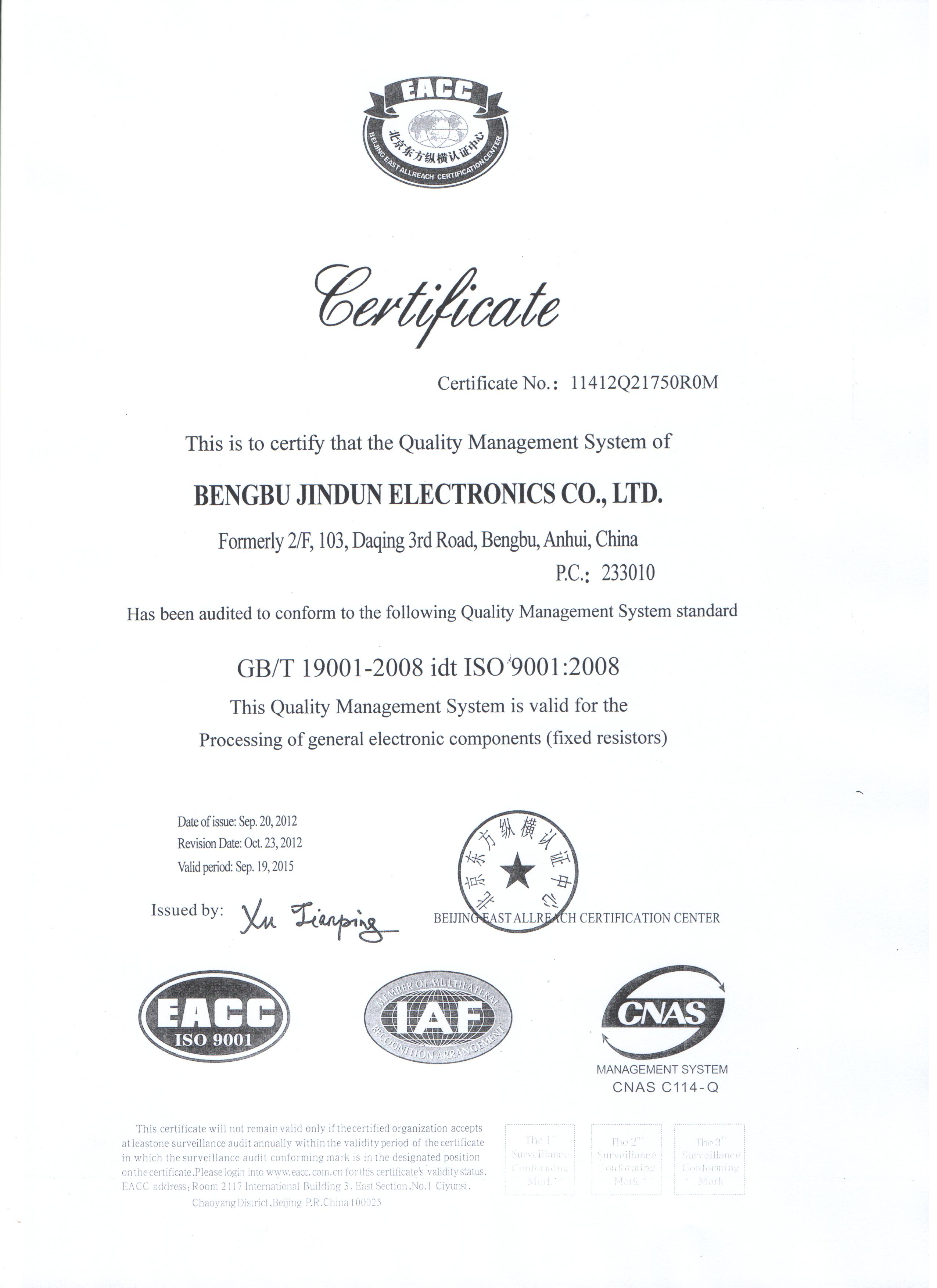 ISO9001質(zhì)量體系認(rèn)證證書(shū)