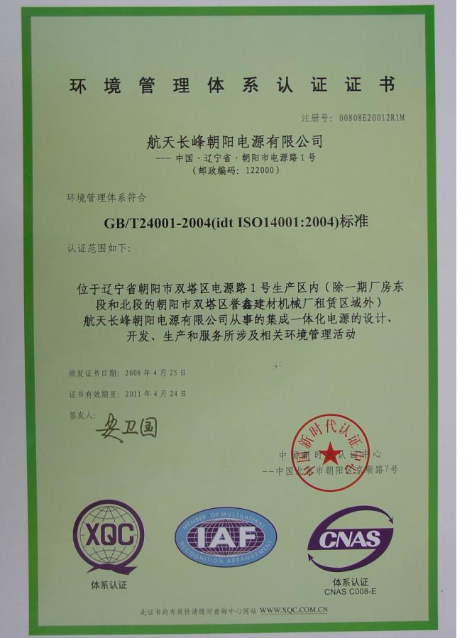 環(huán)境管理體系認(rèn)證證書(shū)