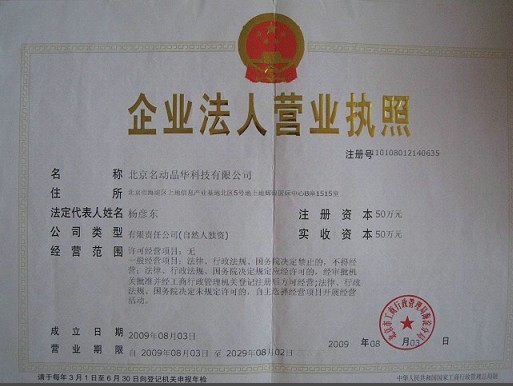 北京名動晶華科技有限公司