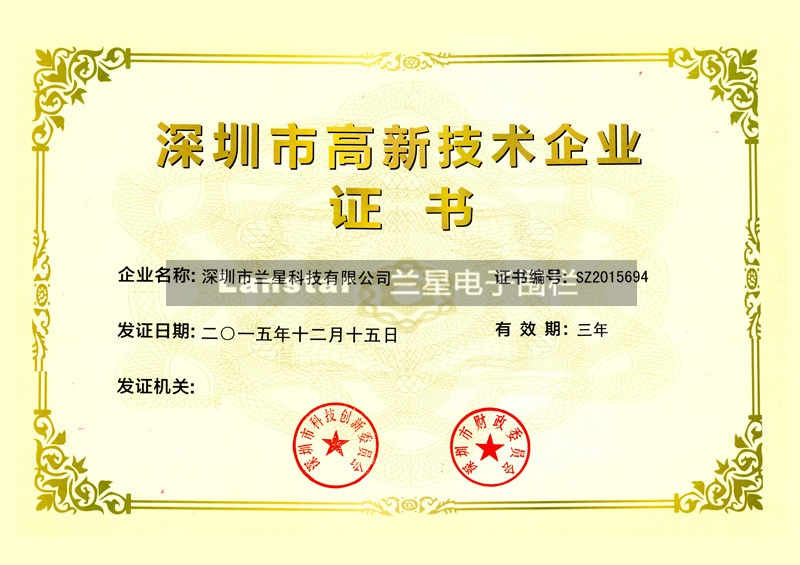 深圳市高新技術(shù)企企業(yè)證書