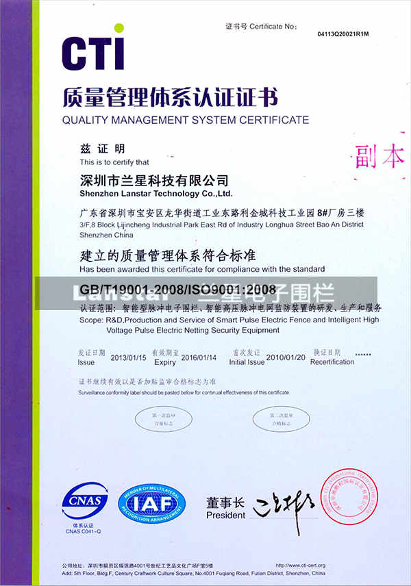 ISO9001質(zhì)量體系認(rèn)證證書