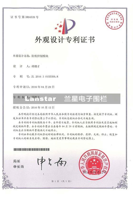 防剪控制模塊專利證書
