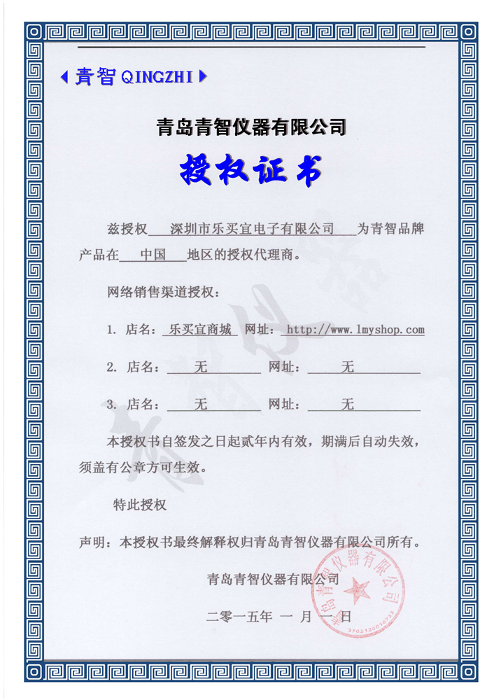 青智儀器代理證書