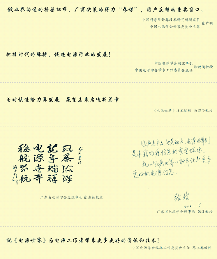 在新的年度里,讓我們攜手共進,為實現(xiàn)更高的目標共同努力。 祝愿《電源世界》雜志百尺竿頭,更進一步,成為電源雜志第一品牌。
